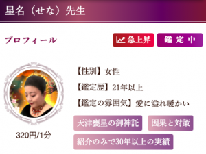 鑑定実績26,000件超、脅威の支持率を誇るカリスマ鑑定師、占い界のレジェンドと称される殿堂入りの超人気鑑定士です。