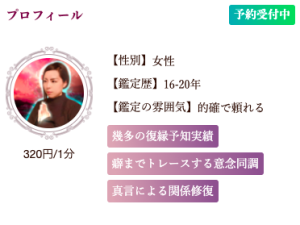 | 鑑定のタイプ | 雰囲気:ユーモア 話し方:ハキハキ |